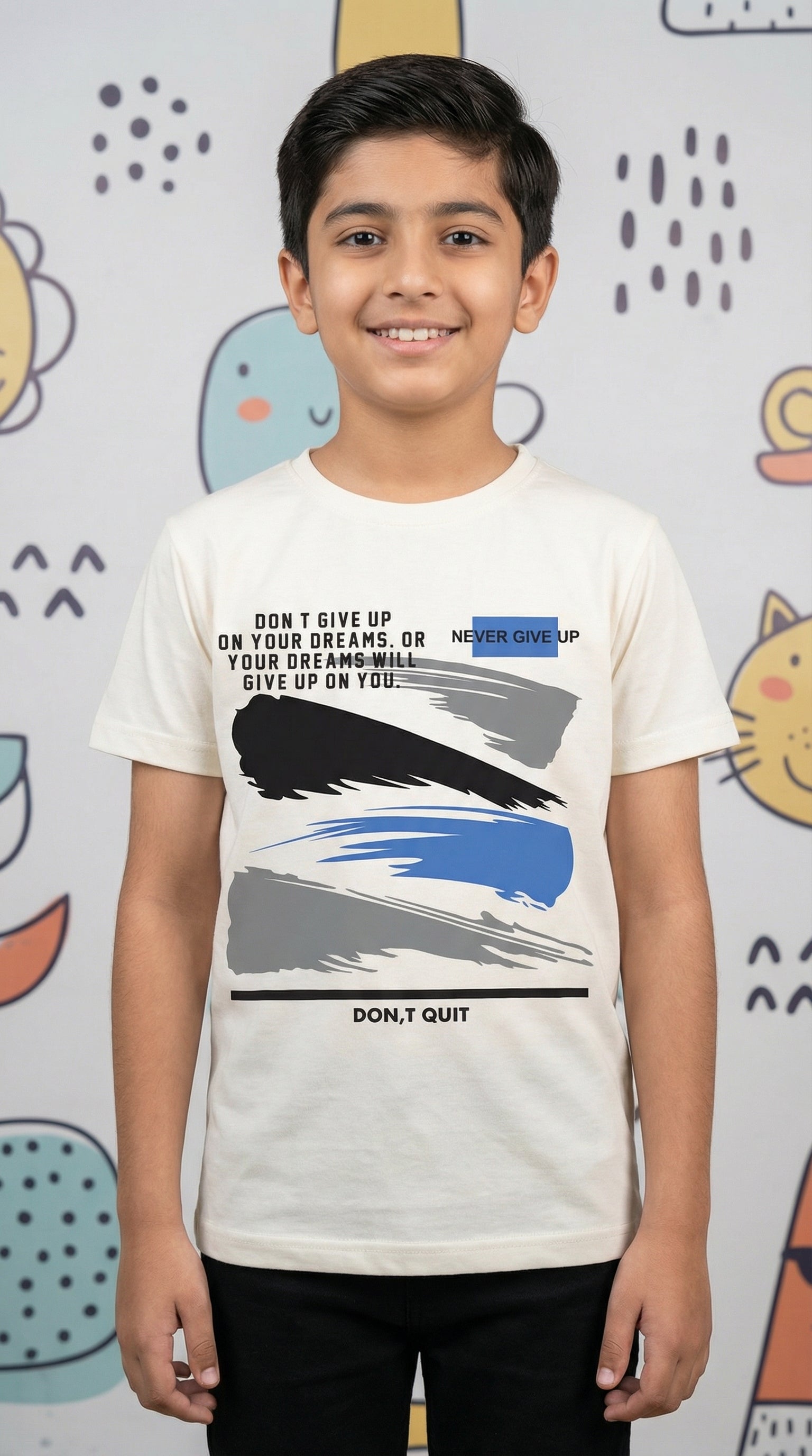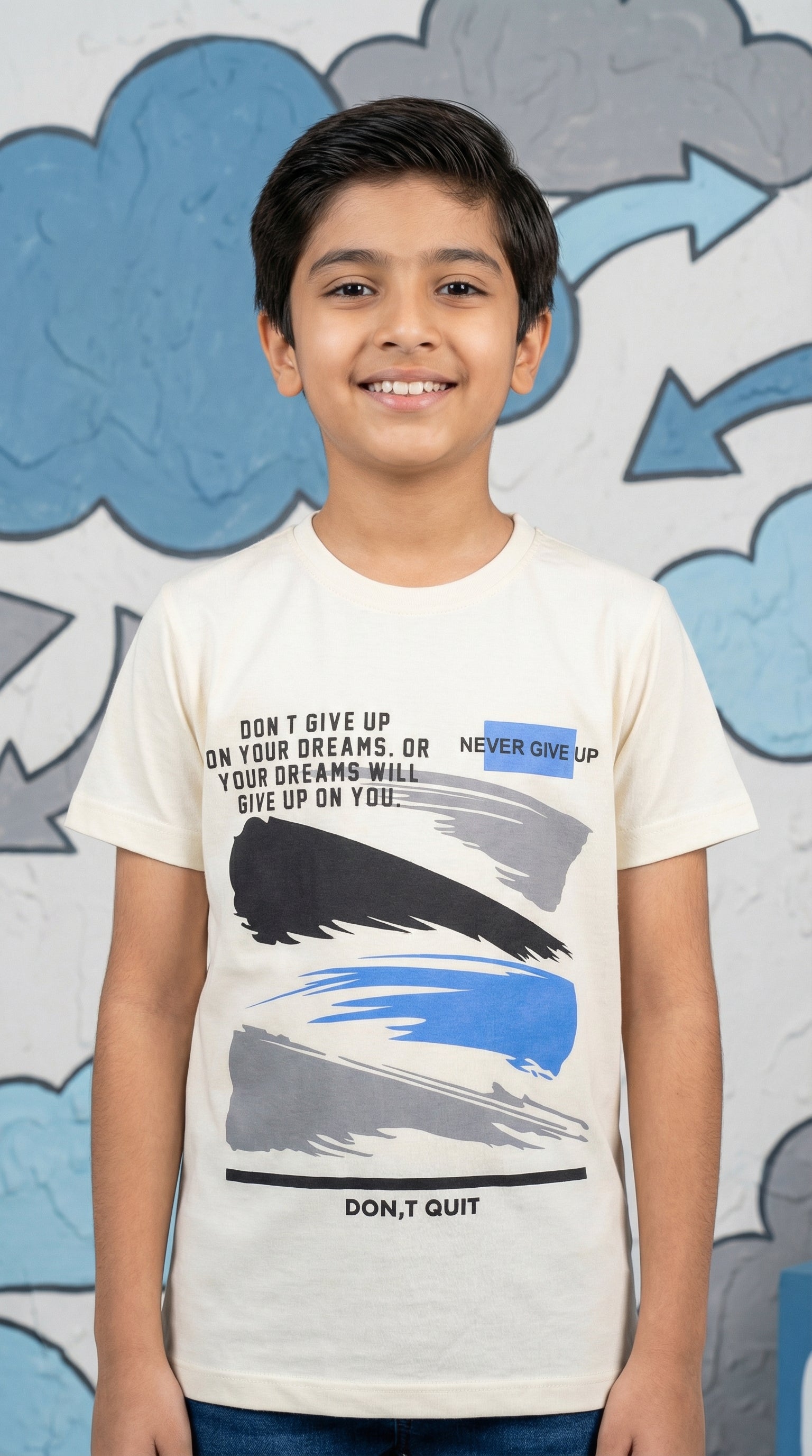 Whether he’s embracing the California vibe with our "Paradise Venice Beach" graphics or staying motivated with the "Never Give Up" inspirational series, these tees deliver the perfect mix of modern style and supreme comfort.